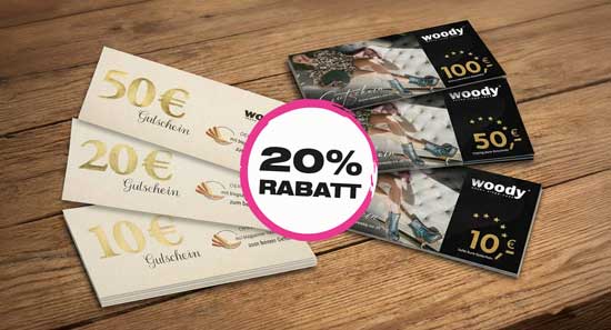 Jetzt woody® Gutscheine kaufen und 20% Rabatt erhalten!